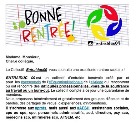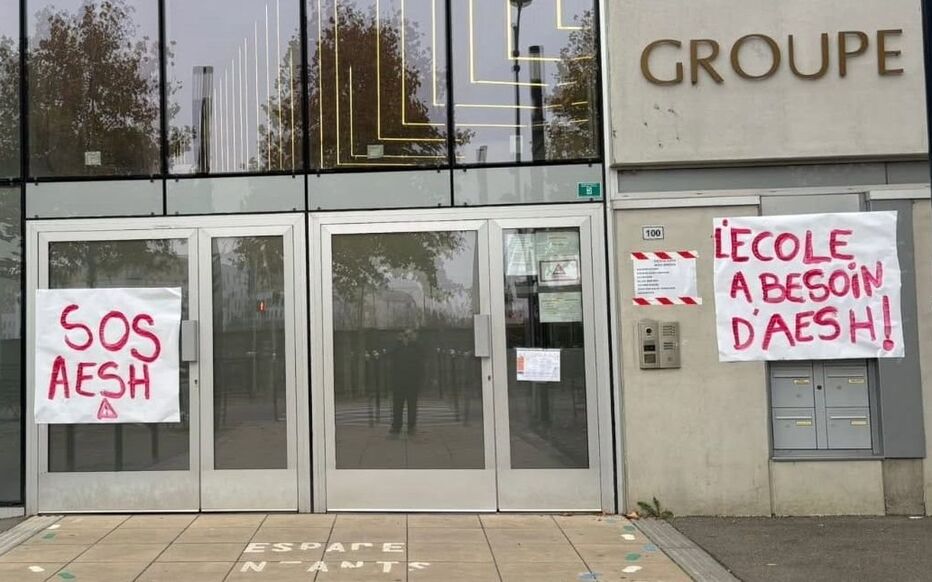 V. ensuite cette ordonnance admettant de façon circonstanciée l’exclusion définitive d’un élève « en situation de handicap et scolarisé au collège Jules Ferry à Villefranche-de-Lauragais, (…) pour avoir menacé de mort son accompagnante » (TA Toulouse, 10 oct. 2024, B. F., n° 2201010 ; LIJMEN janv. 2025, n° 233, au seul visa des lois et règlements, cons. 1 et 3) ; le reportage dans les Côtes-d’Armor de Manon Boquen, « Le parcours d’obstacles des AESH, piliers oubliés de l’école inclusive : « Je suis au bout du rouleau, à passer d’un élève à l’autre » », lemonde.fr/m-le-mag 10 janv. 2025 (extrait, en citant Sophie Ratinaud – qui intervient à la fois au collège de Plénée-Jugondans et dans les écoles publique et privée de Bréhand ; photo de « Caroline Lagadeuc et Sandy Guyomard, les fondatrices de l’association AESH en lumière, le 6 décembre 2024, à Lamballe ») ; cet article de Julie Lancelot, « « Ce n’est plus de la colère que je ressens, c’est du dégoût » » : dans les Landes, des contrats d’AESH revus à la baisse unilatéralement en cours d’année », sudouest.fr les 14-19 janv. (extrait).