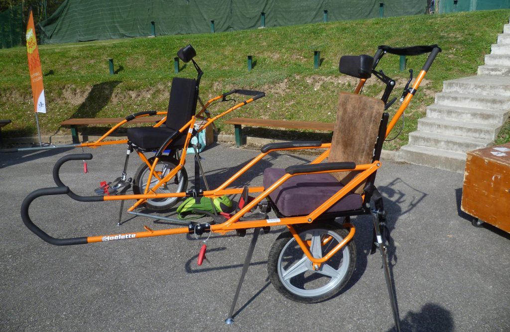 À la troisième note de ce texte, après avoir raillé l’expression Urban trail, je signale que la délégation iséroise d’APF France handicap participe à l’organisation de la 9ème édition d’un authentique trail, le dimanche 26 avril prochain (letraildes3pucelles.com), adapté aux joëlettes (v. ci-contre) ; départ à 8h50 du Parc François Mitterrand de Seyssins (trail-adapteacute.html) !