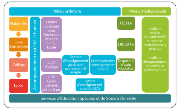 | ↑28 | V. déjà Éléa Pommiers, « L’engorgement des ULIS, symbole des difficultés de la politique d’inclusion scolaire en France », lemonde.fr 19-21 nov. 2024 (extrait) : « selon la Rue de Grenelle (le ministère), c’est notamment dû « au fait que « nous [y] scolarisons (…) des élèves en attente de place en établissement ou service médico-social », dont les handicaps sont beaucoup plus lourds. Au mois d’août 2024, la précédente ministre de l’éducation nationale, Nicole Belloubet, avait pour la première fois communiqué le chiffre de 24 000 élèves accueillis dans les établissements scolaires faute de places dans le secteur médico-social ». |